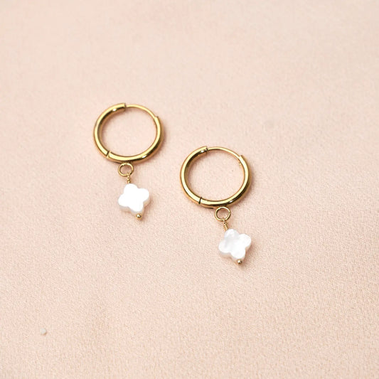 Small Stainless Steel Hoop Earrings with Mother-Of-Pearl Clover earrings